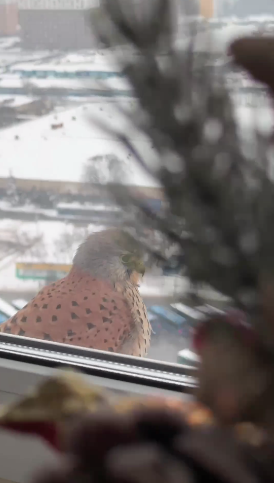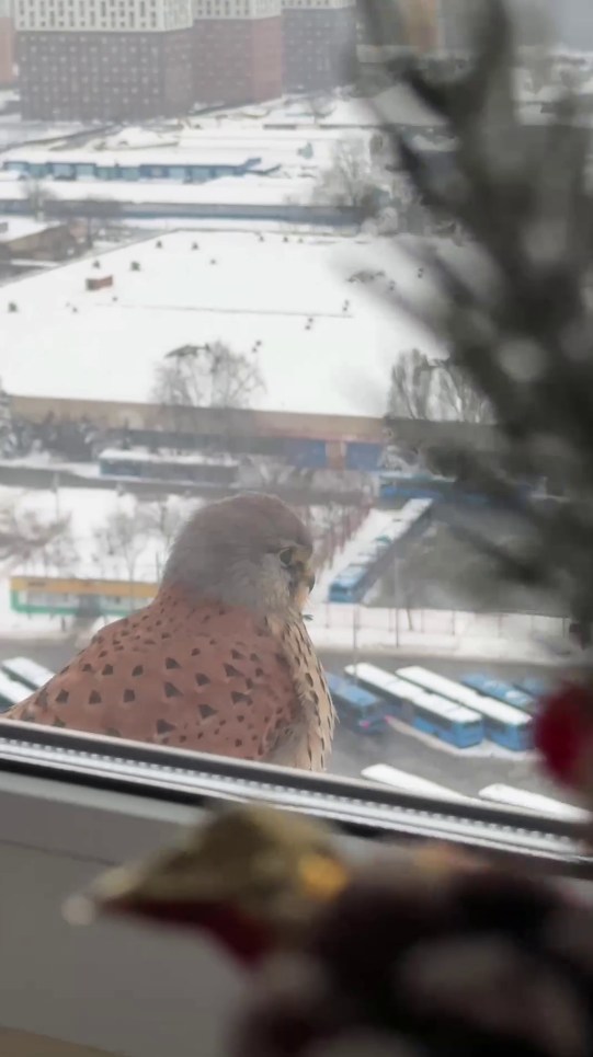Но вот на той неделе, этой зимой, вновь появился сокол, и сел по ту сторону окна!!! Такой миленький! Но йа его спугнуль случайно, пока на видео записывал. Х). Мда. фото-маньяк из меня ещё тот конечно....)